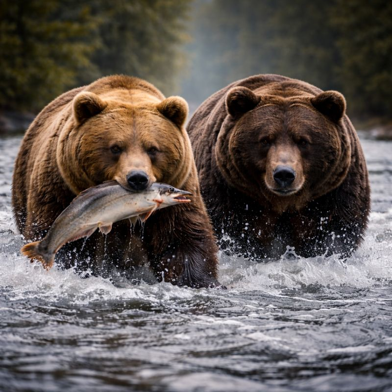 グリズリーは、サケが遡上する川がある地域では、魚を主要な栄養源にします。