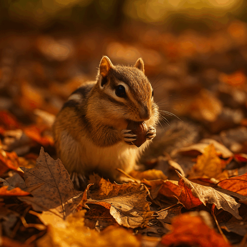 野生下では、シマリスは冬に備えて秋のうちに食料を集めます。頬袋(ほおぶくろ)を使い、一度に数十個もの木の実を巣穴に運び込む姿はよく知られています。この「貯食(ちょしょく)」行動によって、冬でも餌が確保され、厳しい季節を乗り越えることができます。