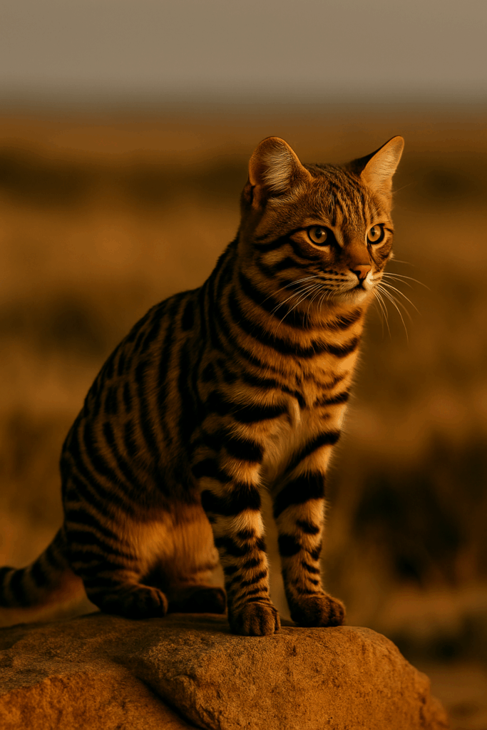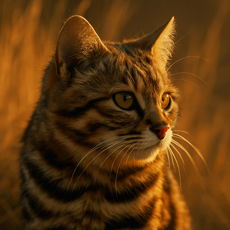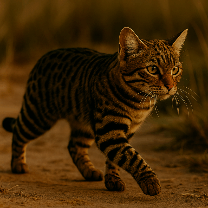 • 歴史的にも家畜化されることはなく、リビアヤマネコ系統の家猫と異なり、人と共生する進化ルートを選ばなかった純野生のネコである。