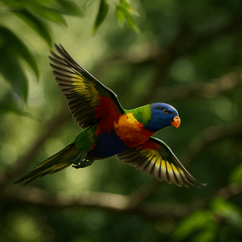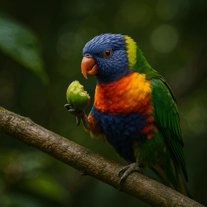ゴシキセイガイインコは、オーストラリア北部、ニューギニア、インドネシア周辺に生息するロリ科(Loriinae)に属する鳥で、その鮮やかな色彩から “Rainbow Lorikeet” として国際的に知られています。