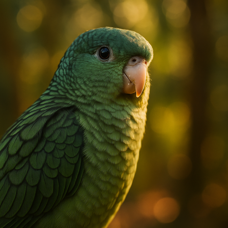 サザナミインコは、学名 Bolborhynchus lineola といい、南米アンデス山脈周辺の亜熱帯〜温帯の森林に生息する小型インコです。体長は約16 cm、体重は45〜55 gほどで、インコ類としては比較的ずんぐりとした体型をしています。