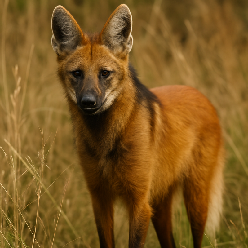 タテガミオオカミとは、南米に生息するイヌ科の中でも最も特異な姿を持つ動物で、学名は Chrysocyon brachyurus といいます。この動物は「オオカミ」という名前がついているものの、実際にはオオカミ(Canis lupus)とは近縁ではなく、イヌ科の中で独自の系統として進化した“孤立した存在”として知られています。
