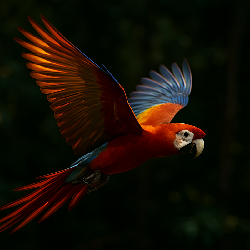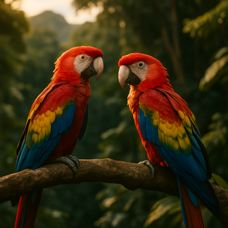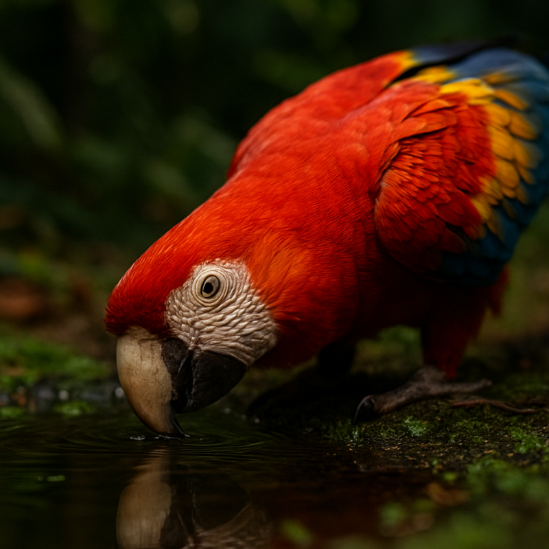 ベニコンゴウインコの歴史は非常に古く、南米の先住民族の文化と深いつながりがあります。アマゾン地域の遺跡からは、コンゴウインコの羽を使った装飾品や宗教儀式用の道具が多数発見されており、この鳥が「力・再生・生命」を象徴する存在として扱われてきたことがわかっています。赤い羽は特に神聖視され、儀式や装飾の中心的素材として利用されてきました。