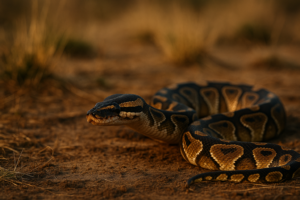 ボールパイソンは、アフリカ大陸の西部から中部にかけて分布するニシキヘビ科の小型ヘビです。学名は「Python regius」といい、直訳すると「王のニシキヘビ」という意味を持ちます。これは古くから、アフリカの一部地域で神聖な存在として扱われてきた歴史を反映しています。成体の平均体長は約1〜1.5メートルで、ニシキヘビとしては小柄な部類に入り、扱いやすさから世界的にペットとして広まりました。