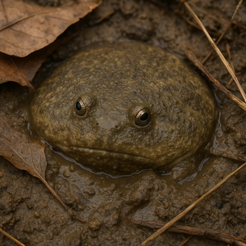 この時期、バジェットガエルは地中に潜り、活動を抑えて過ごします。