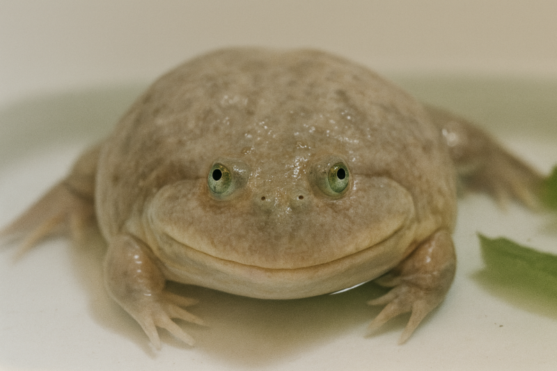 バジェットガエルは、丸みのある体と独特な表情を持つ、少し不思議な魅力のあるカエルです。