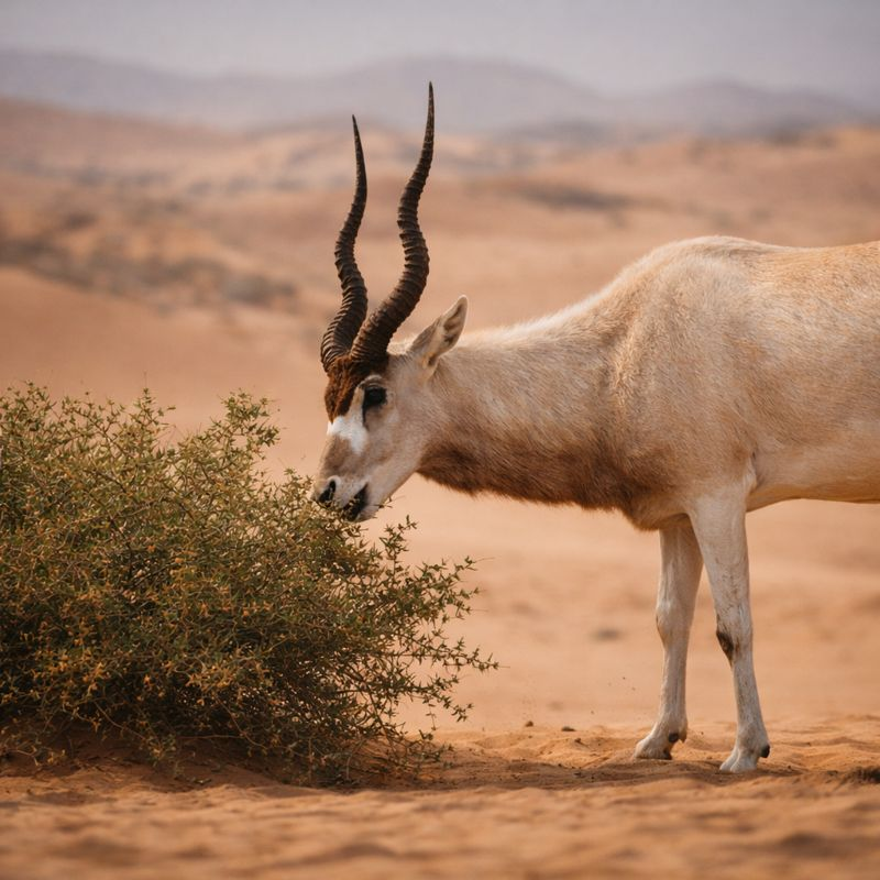 アダックスの習性は、暑さと乾燥のリスクを下げながら、必要な植物を探して動く、省エネ型の暮らし方です。