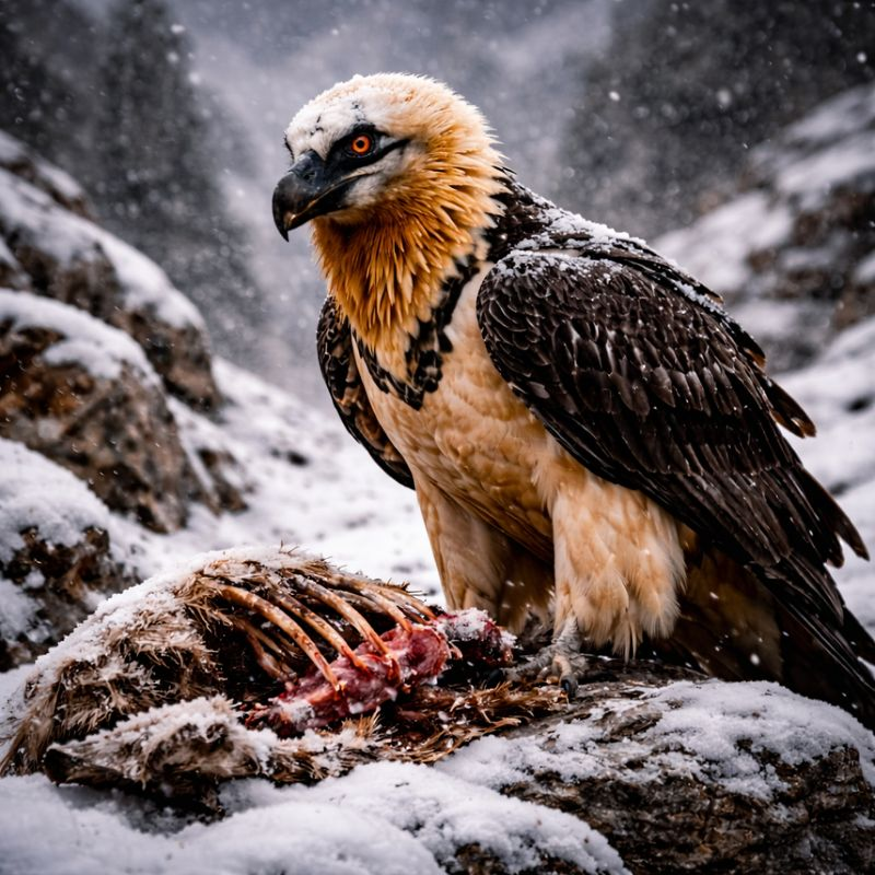 • ヒゲワシは山岳地帯で暮らす大型の猛禽類で、骨を重要な食べ物として利用する珍しい鳥