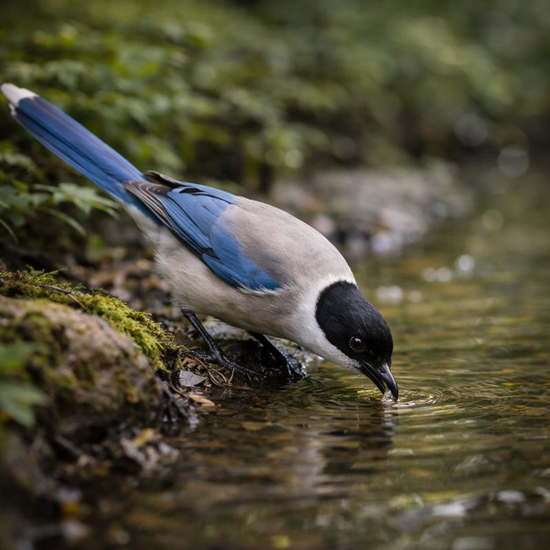 • 見た目はカラス科でも細身で、白・黒・青を基調とした体色が目立つ