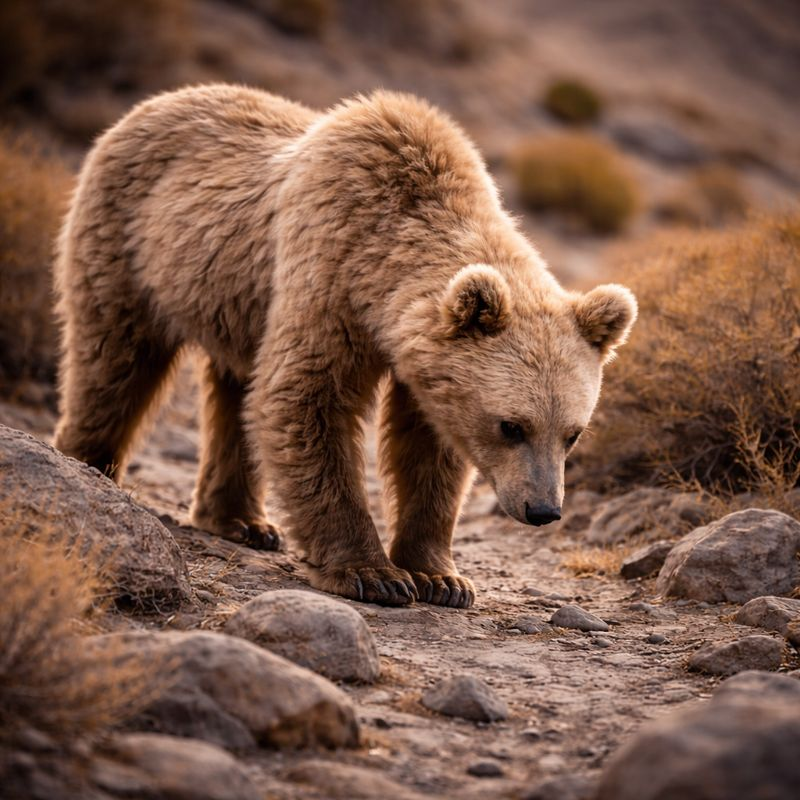 ゴビヒグマは広い行動圏を持ち、餌や水を求めて長距離を移動します。